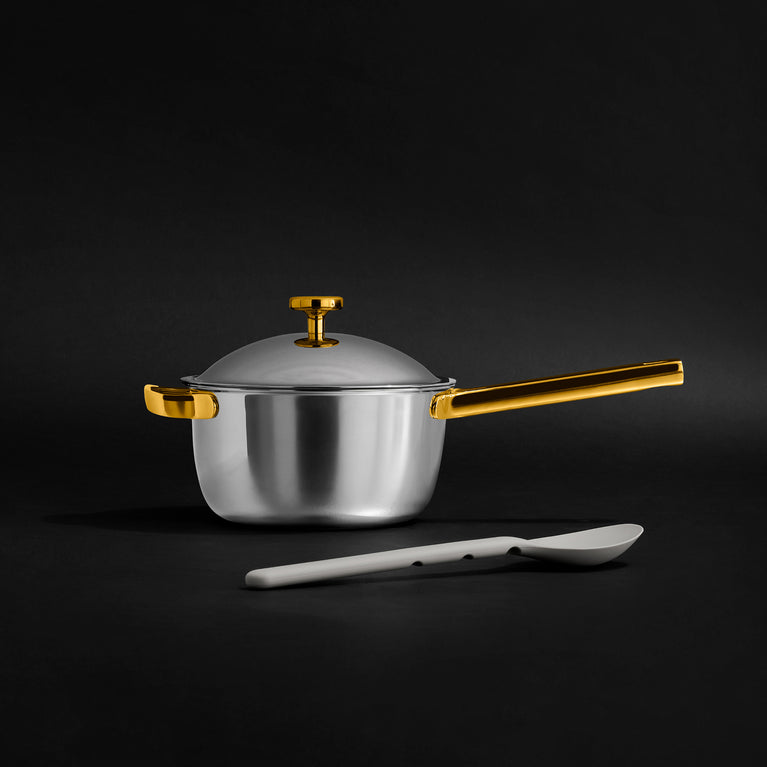 The Titanium Mini Perfect Pot Pro features a tri-ply construction that combines the high heat benefits of stainless steel or cast iron with the convenience of a nonstick effect. The original Mini Perfect Pot also comes in our iconic colors while this pot has a chrome exterior.